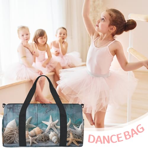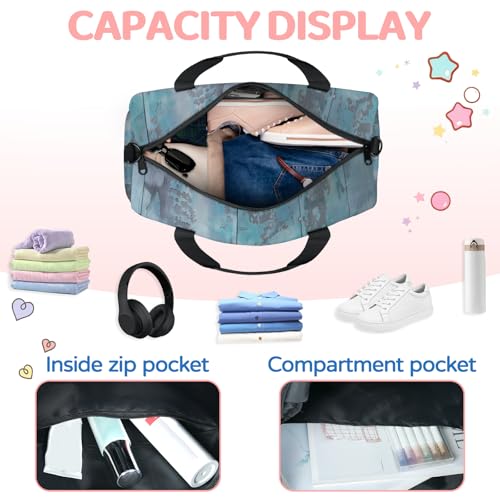 Seashell Blue Wooden Beach Travel Duffel Bag for Women and Men, Sport Tote Gym Bag Carry on Weekender Overnight Bags 3