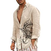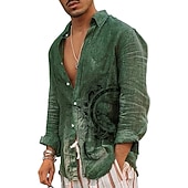 More information about Men's Nautical Vintage Totem Shirt Button Up Shirt Long Sleeve Fashion Streetwear Designer Outdoor Casual Daily Summer Spring Fall Turndown Print Green Khaki Gray