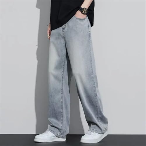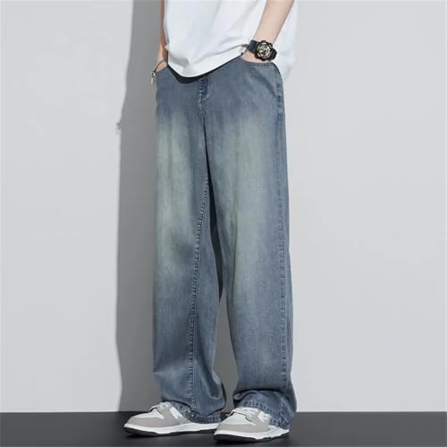 HOT ! Men's American Straight Leg Lyocell Jeans Loose Thin Pants Washed Retro Blue Jeans