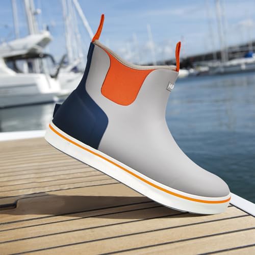 Men's Rain Boots, Waterproof Rubber Deck Boots, Anti Slip 3mm Neoprene Fishing Ankle Shoes for Outdoor Fishing, Boating (Size 7-14) 4