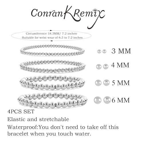 CONRAN KREMIX Waterproof Gold Beaded Bracelet For Women Non Tarnish,Stainless Steel Gold Ball Bead Stretch Layered Bracelet Stack 4