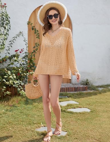 Ivicoer Mesh V Neck Bathing Suit Cover Ups for Women Long Sleeve Fishnet Beach Cover Up S-XL 5