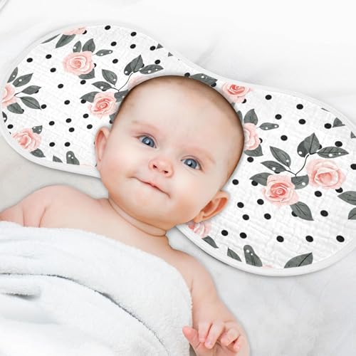 White Roses and Polka Dots Cotton Baby Burp Cloth Good Absorbent washcloth for Unisex Set of 2, 22x11in 6