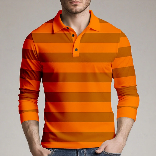 More information about Men's Horizontal Stripes Rugby Polo Long Sleeve Polo Shirts Collared Shirts Sportswear Casual School Outdoor Athleisure 3D Print Spring Fall Winter Black Red Orange