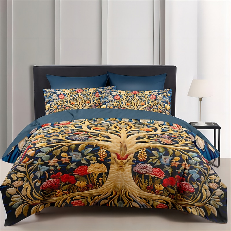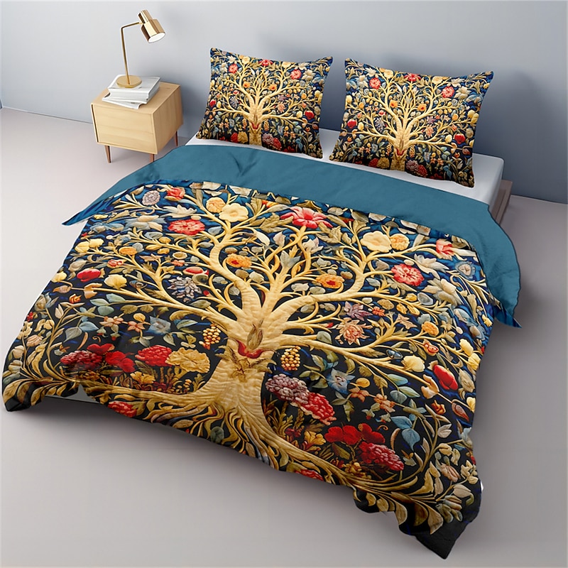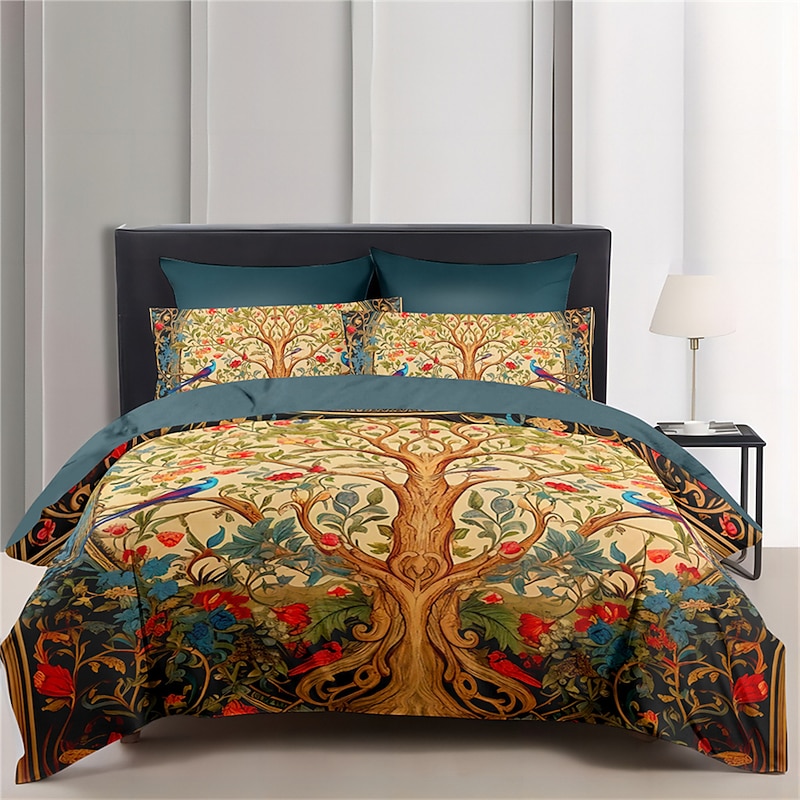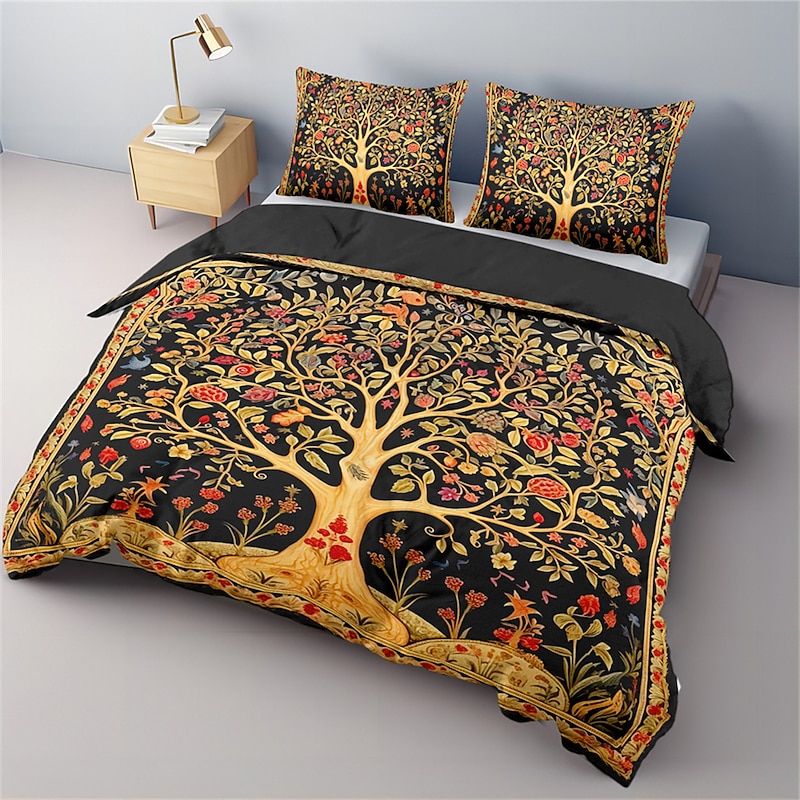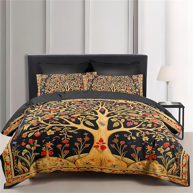HOT ! Medieval The Tree of Life Pattern Duvet Cover Set Set Soft 3-Piece Luxury Cotton Bedding Set Home Decor Gift King Queen Duvet Cover