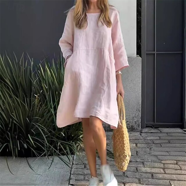 More information about Women's Mini Dress Linen-Inspired Dresses Casual Dress Cotton Linen Dress Stylish Casual Vacation Daily Date Regular Fit Plain Long Sleeve Crew Neck Yellow Pink Orange Summer Spring