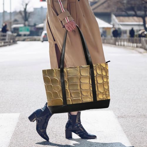 Gold Crocodile Skin Texture essentials tote bag with laptop compartment with zipper laptop travel bag for yoga with lunch bolso de trabajo para mujer 5