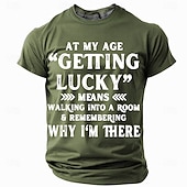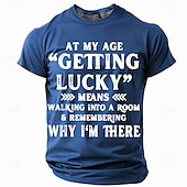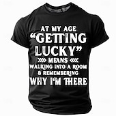 HOT ! Men's Short Sleeve Graphic T-shirt, Funny "Getting Lucky" Aging Memory Quote, Lifestyle Humor Tee