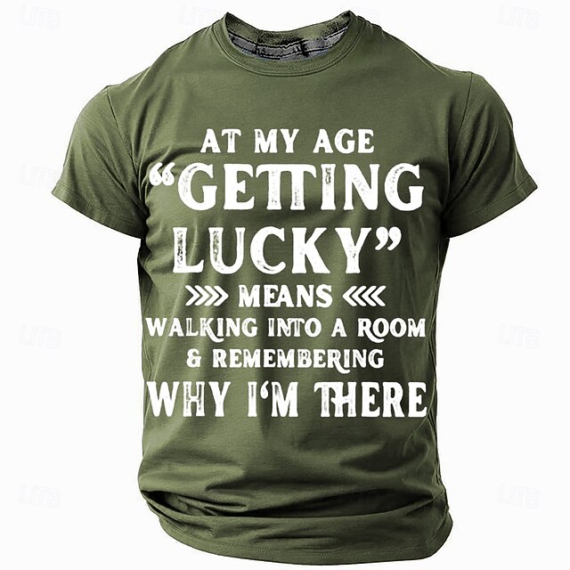 Men's Short Sleeve Graphic T-shirt, Funny "Getting Lucky" Aging Memory Quote, Lifestyle Humor Tee 5