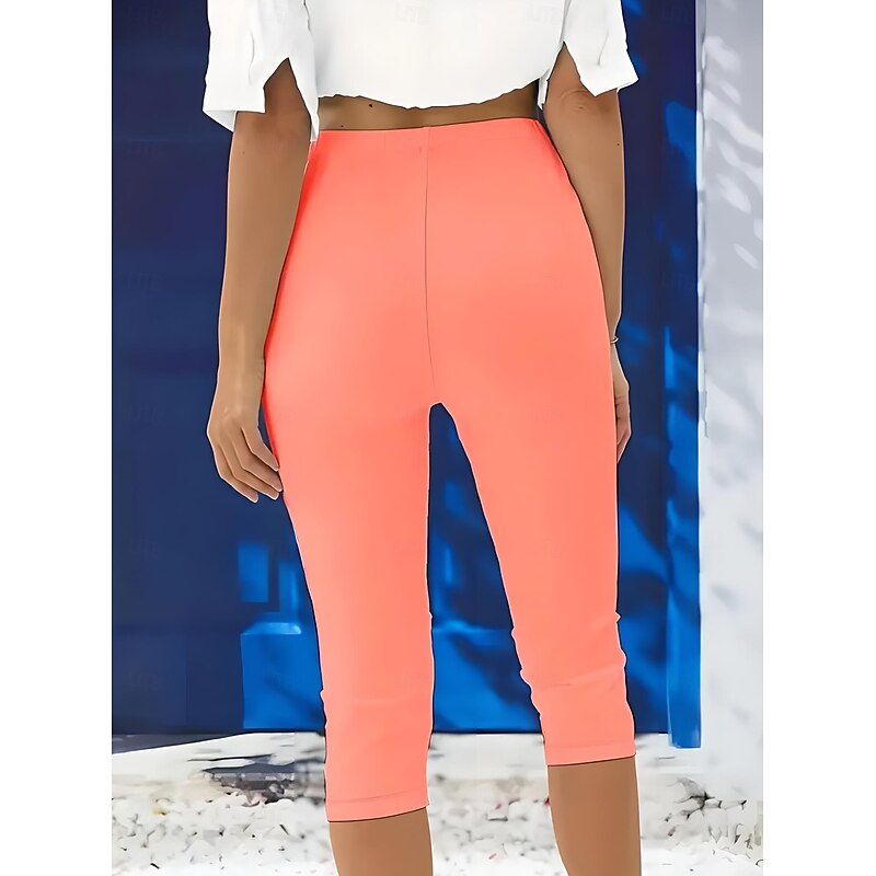Women's Leggings Vacation Fashion Streetwear Capris High Waist Solid Color Printing Thermal Warm Soft Breathable Stretchy Outdoor Vacation Street Robin's Egg Blue Black White Fuchsia Summer Spring 11