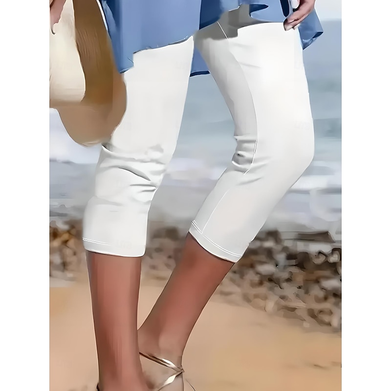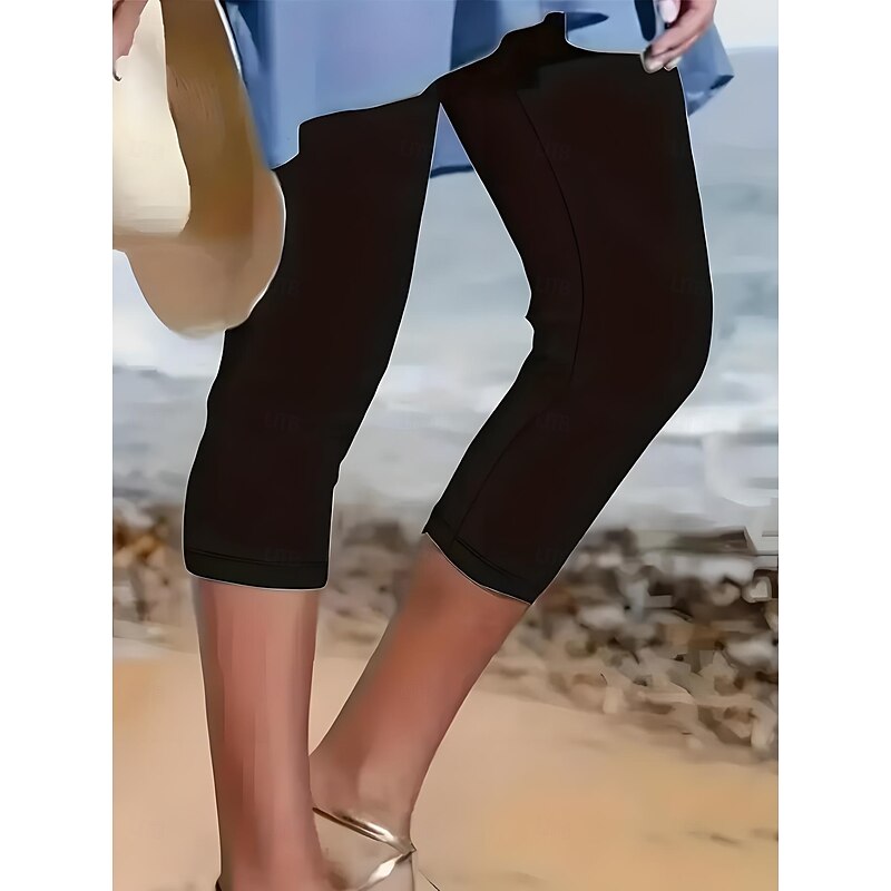 Women's Leggings Vacation Fashion Streetwear Capris High Waist Solid Color Printing Thermal Warm Soft Breathable Stretchy Outdoor Vacation Street Robin's Egg Blue Black White Fuchsia Summer Spring 24