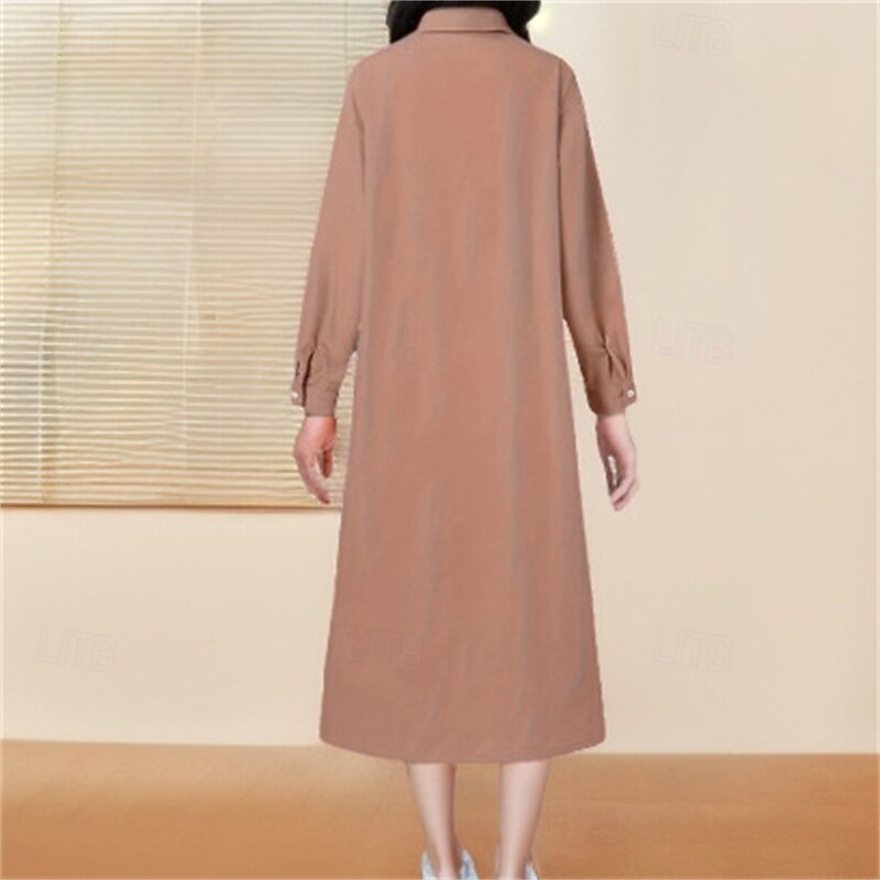 More information about Women's Long Dress Maxi Dress Linen-Inspired Dresses Shirt Dress Casual Dress Cotton Linen Dress Stylish Casual Vacation Daily Date Regular Fit Plain Long Sleeve Lapel Pink Navy Blue Brown Summer