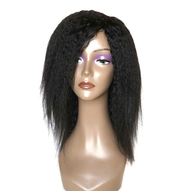 $80.99 - Long Kinky Straight Human Hair Wig with Bangs #1B 12"-16" Capless Brazilian Hair - Best Quality New Arrival for Women's Daily and Party Wear 2025. Shop for cheap Human Hair Capless Wigs online? Buy at lightinthebox.com on sale today!