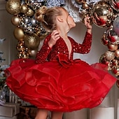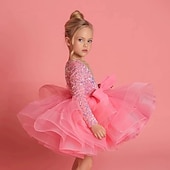 More information about Flower Girl Dress Girls' Dress First Communion Dress Performance Wedding Party Princess Sweet Ruched Mesh Polka Dot Long Sleeve Crew Neck Type A Type B 3-12 Years