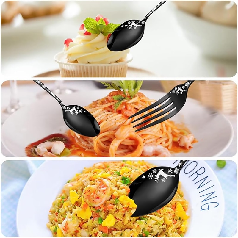 More information about 20/40 Piece Christmas Tableware Set for 8, Black Flatware set Service for 8,Unique Christmas Tree Snowflake Pattern DesignSatin Finish Cutlery for 8,Dishwasher Safe