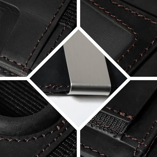 • PREMIUM GENUINE LEATHER: This smart Money clip wallet is made of Full Grain Crazy Horse Leather is a unique type of leather made from FULL-GRAIN natural leather using a special technique. It is known for its durability, hardness, and natural appearance.