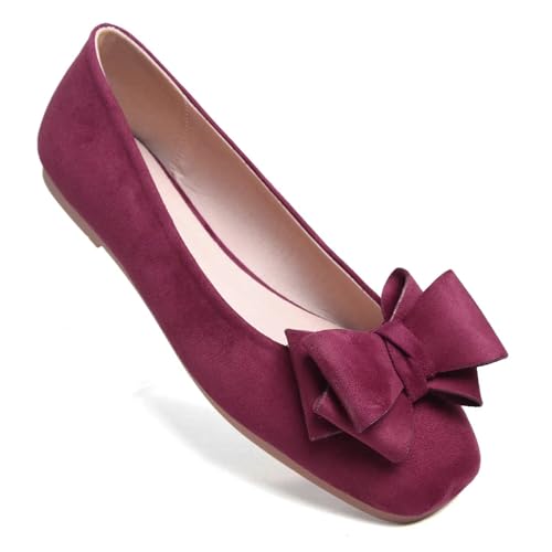 Hee grand Flats for Women Comfortable Wide Width Square Toe Slip On Flats Bowknot Dress Shoes 6