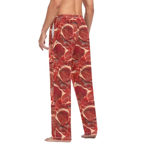 Mens Cotton Pajama Pant – Meat Texture Print Lounge Pjs Bottom with Pockets Drawstring S 1