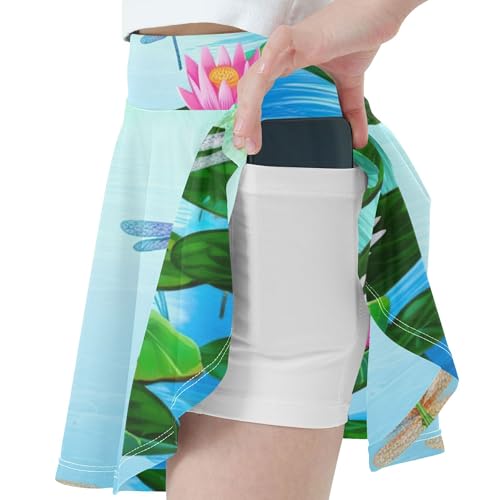 Athletic Shorts Girls Skorts Bloom Pink Lotus Flowers Green Toddlers Tennis Skirts Dance Golf Flowy Skirt 3t 4