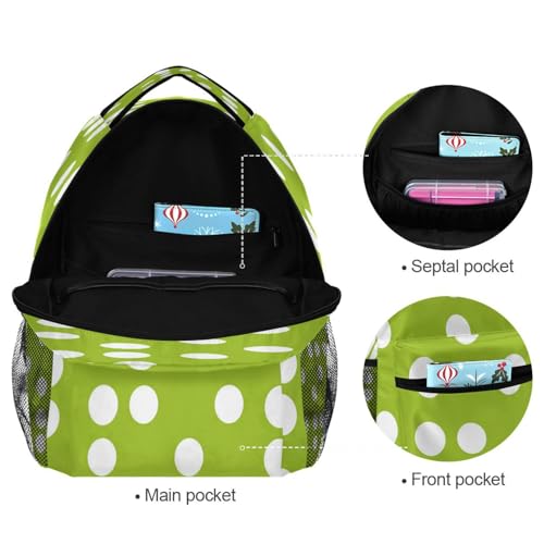Grass Green White Dots Kids Backpack School Backpacks for Boys Girls 16 IN Book Back Pack Bag Casual Travel Daypack with Adjustable Shoulder Strap Zipper 5