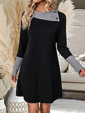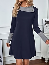 Highlights - Perfect for both spring and fall seasons - Made of comfortable polyester fabric - Features stylish long sleeves - Designed for women's daily wear - Loose fit for added comfort - Trendy color block pattern - Features chic button details - The classic crew neckline - Mini dress length for a modern look.