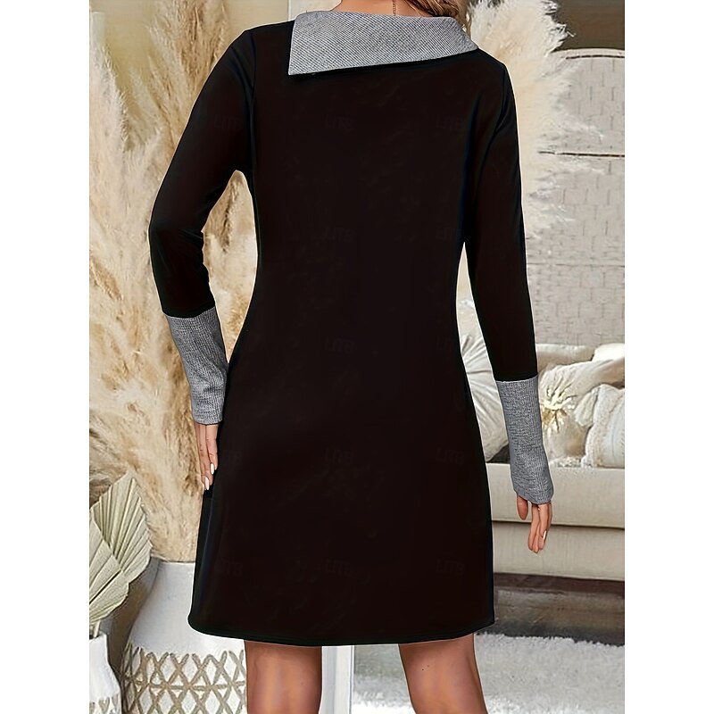 More information about Women's Mini Dress Print Dress Fashion Modern Daily Going out Weekend Loose Fit Color Block Long Sleeve Crew Neck Black Navy Blue Spring Fall