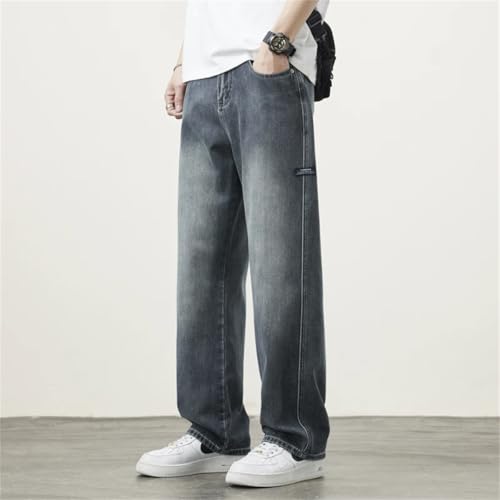HOT ! Men's Summer Thin Loose Jeans Breathablestraight Trousers Streetwear Vintage Denim Pants