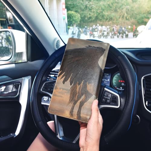 Why Choose Horse Wings Print Leather Car Registration and Insurance Holder Purse for License Documents Cards?