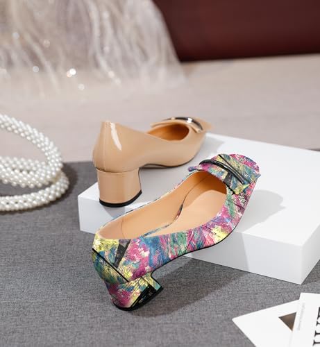 • The design of these low chunky heel pumps is simple yet elegant, with a square toe and a classic silhouette that pairs well with any outfit. They are available in a range of colors, from classic black and nude to bold shades like red and blue, so there is a pair to match any style.