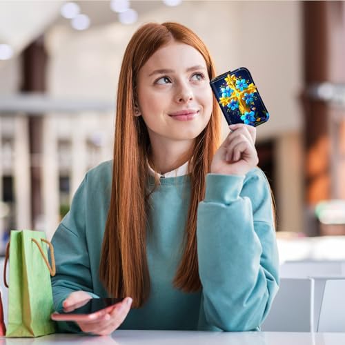 Credit Card Holder with Zipper, Slim RFID Blocking Card Wallet for Women Men Golden Cross Design PU Leather Small Accordion Card Case Wallet, ID Card Organizer, Pocket Business Card Case 7