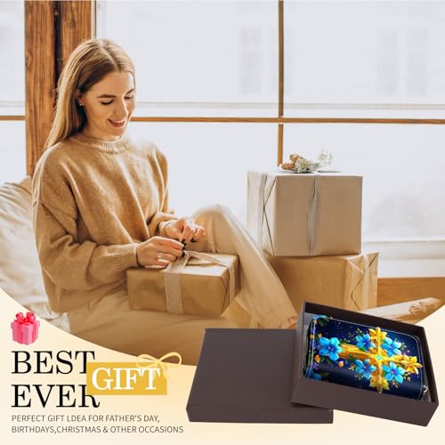 Credit Card Holder with Zipper, Slim RFID Blocking Card Wallet for Women Men Golden Cross Design PU Leather Small Accordion Card Case Wallet, ID Card Organizer, Pocket Business Card Case 1