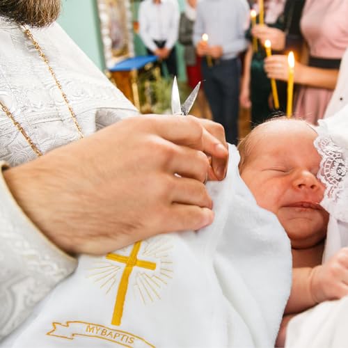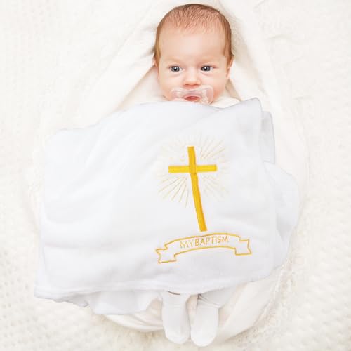 • Adorned with Cross Print: our white baby socks and baptism bib for baby are embroidered with subtle cross patterns, and the blanket is beautiful and designed with a cross and the letters "My Baptism"; The pretty designs elevate the sacred nature of the occasion; This further enhances the aesthetic appeal, while symbolizing divine protection wherever your baby may be