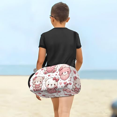 Duffle Bag Kids Gym Bag with Shoes Compartment & Wet Separation Overnight Travel Duffel Bag Pink Bear for Girl Boy 5