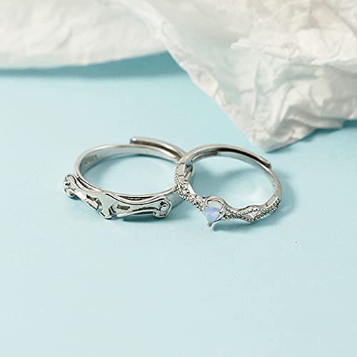 OIDIMS Princess and Knight Couple Ring Promise Love Matching Sets S925 Sterling Silver Crystal Wedding Engagement Open Rings for Women Men Romantic Lover 2