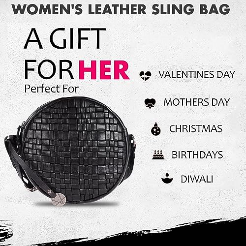 More information about Genuine Leather Round Crossbody Bags For Women, Sling Bag For Women Crossbody Purse Trendy Casual