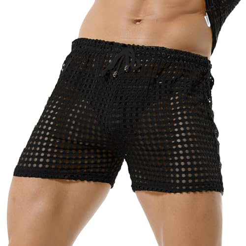 More information about DTODWW Mens Fishnet Underwear Boxer Shorts Mesh Trunks See Through Shorts with Drawstring Nightwear Shorts