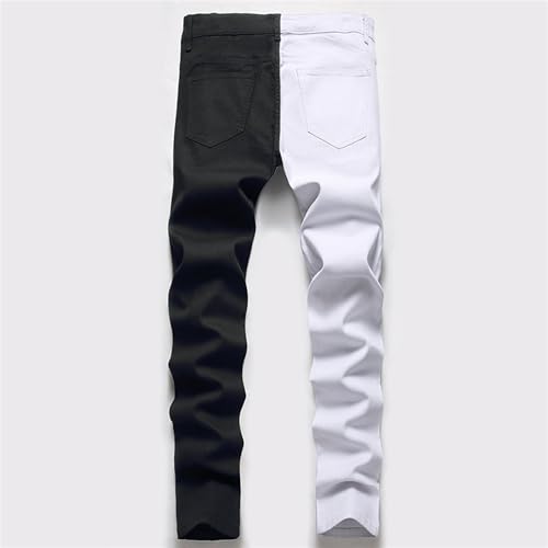 Men's Color Block Skinny Jeans Straight Regular-Fit Jean Pant Casual Patch Slim Fit Denim Pants 6