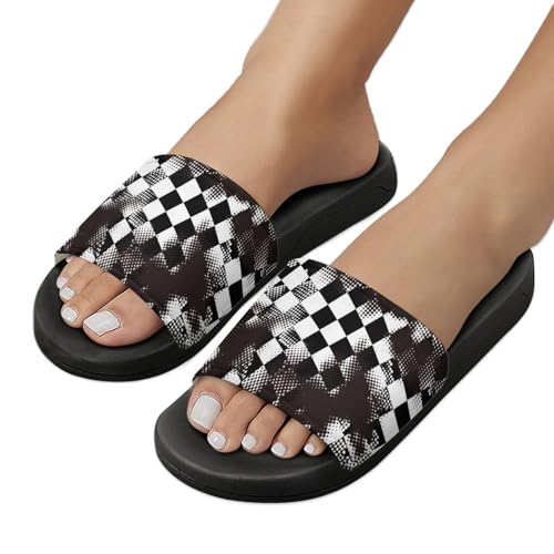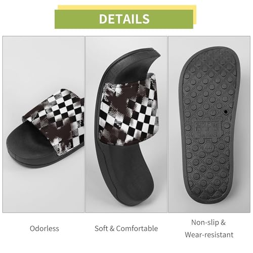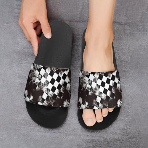 Grungy Style Black Checkered PVC Slippers Sandals for Women Men Open Toe Soft Cushioned Non-Slip Sandal for Indoor Outdoor 7
