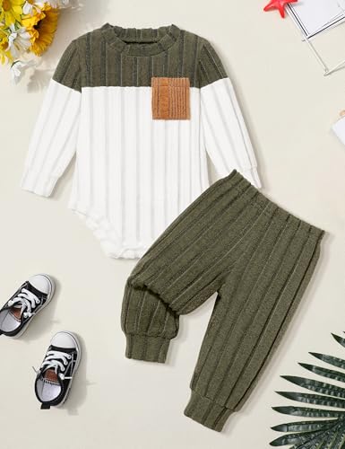 Baby Boy Clothes Color Block Ribbed Knitted Outfits Long Sleeve Romper+ Pants 2PCS Outfit 0-12 Months 5