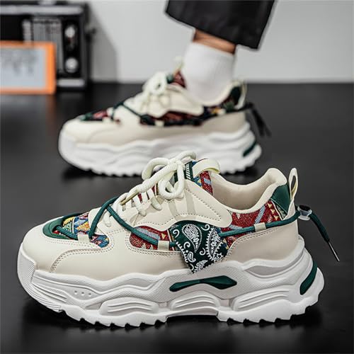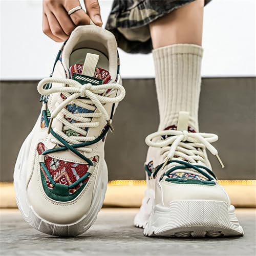 Fashion Leather Lace-Up Chunky Sneakers for Men Casual Round Toe Platform Walking Running Driving Sport Shoes 6