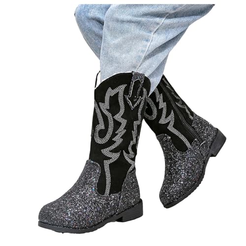 HOT ! Girls Cowgirl Boots Glitter Mid Calf Zipper Round Toe Western Cowboy Boot for Kids Riding Boots with Side Zipper Waterproof Non Slip Sole for Outdoor Activities