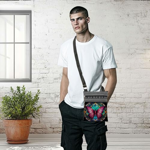 Stained-Glass Style Butterfly Crossbody Bag Women Adjustable Shoulder Strap Messenger Bag Men Travel Purse Birthday Gift Mother's Day Present​​ Christmas for Friend Nature Lover Adults 6