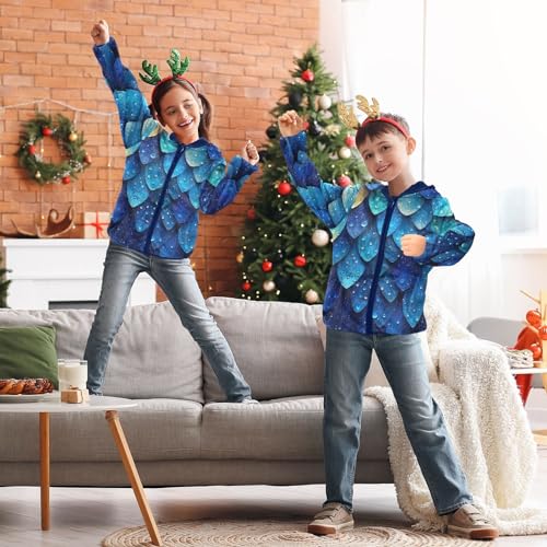 Boys Girls Fleece Jacket Cartoon Blue Fish Scales Print Kids Warm Hooded Outwear Coat 6
