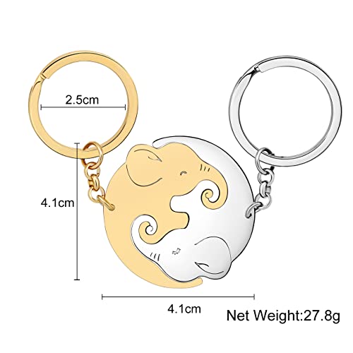 WEVENI Cute Elephant Gifts Couples Stainless Steel Elephant Keychains Key Ring Charm Jewelry for Women Girls 1