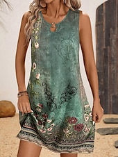 More information about Women's Mini Dress Sundress Summer Dress Vacation Boho Daily Holiday Regular Fit Floral Graphic Paisley Sleeveless Crew Neck Green Summer