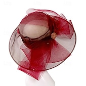 More information about Fascinators Kentucky Derby Hat Headwear Organza Bucket Hat Floppy Hat Sun Hat Holiday Cocktail Elegant Vintage With Rhinestone Cap Headpiece Headwear