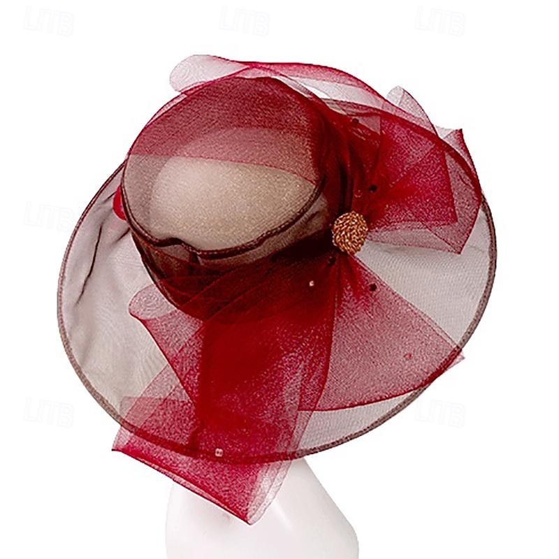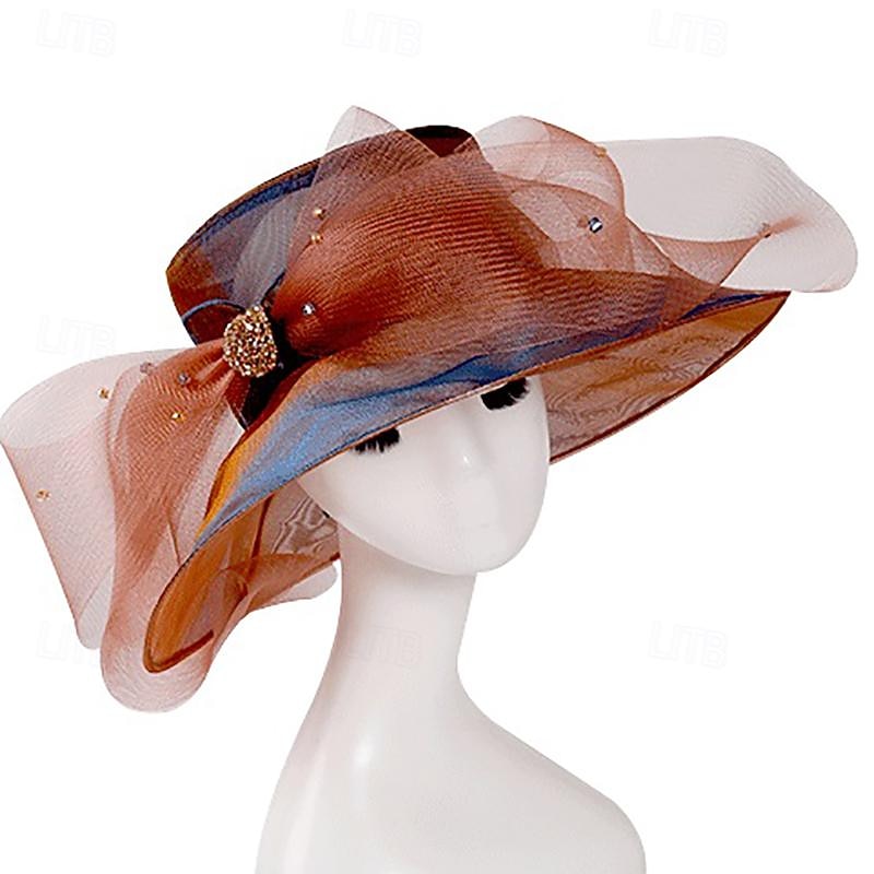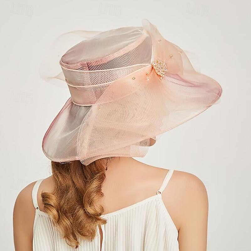 HOT ! Fascinators Kentucky Derby Hat Headwear Organza Bucket Hat Floppy Hat Sun Hat Holiday Cocktail Elegant Vintage With Rhinestone Cap Headpiece Headwear
