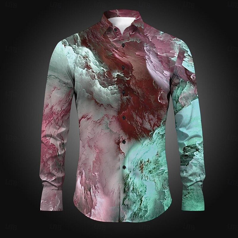 Featuring a captivating abstract graphic print, this shirt combines elements of watercolor and marbled designs in shades of blue, beige, and white. The classic button-up front and turn-down collar give it a timeless appeal, while the vibrant print adds an artistic flair for those who enjoy making a bold fashion statement.