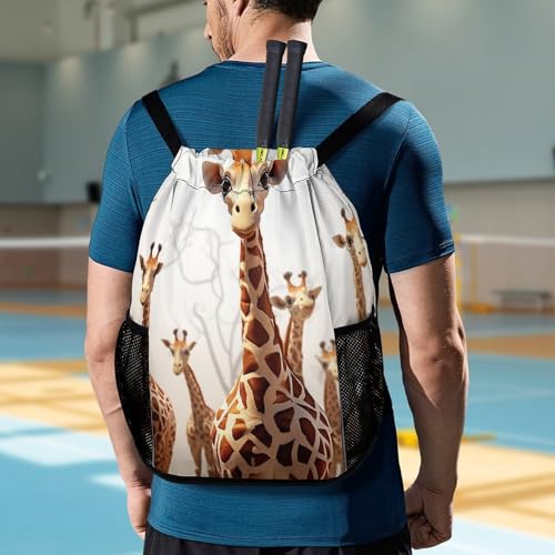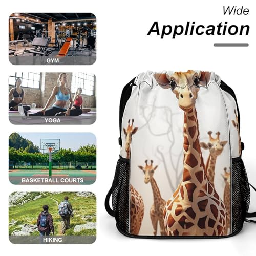 • Large Capacity: This Cartoon Giraffes Draw String Back Bag Measures 18" X 14.2" And Is Big Enough to Hold a Gym Clothes, Swimwear, Towel, Badminton, Basketball/Soccer Gear, Beach Essentials, Daily Supplies, Or Workout Items. Cartoon Giraffes Sports Backpack Is Perfect for the Gym, Sports, Trips, Travel, Camping, Hiking, Walking, Running, And More
