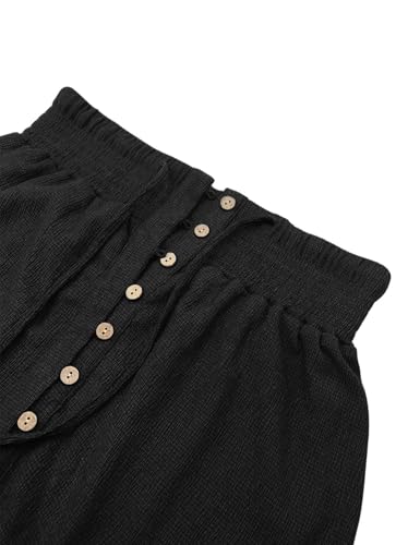 Minclouse Women's Elastic Tie Waist Button Down Maxi Skirts Casual Loose Flowy Swing Slit Front Dress 6